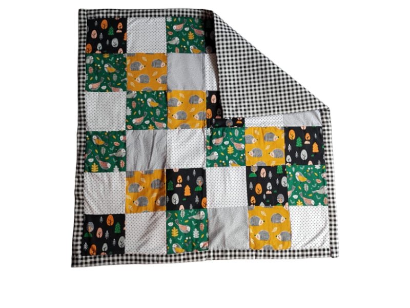 Manta bebé bordada modelo Vichy Negro de Petons de Papallona, confeccionada 100% en algodón. Cada pieza es única y hecha completamente a mano, garantizando calidad y detalle artesanal.