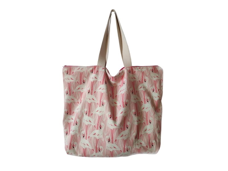 Bolso de flamencos hecho de algodón con cremallera y bolsillo interior