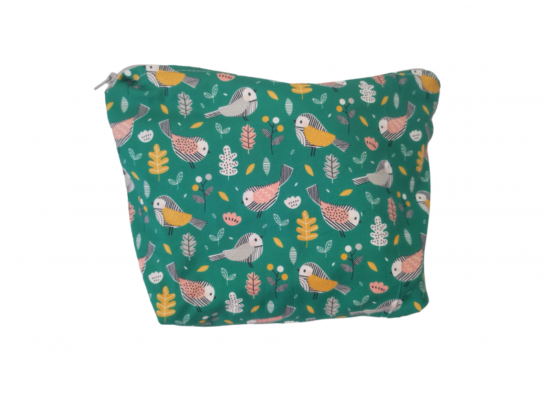 Neceser de pajaritos hecho de algodón, con diseño único que mantienen todo seguro y organizado. Con una cremallera resistente y espacio suficiente para pañales y otros artículos esenciales, son ideales para el día a día con tu bebé.