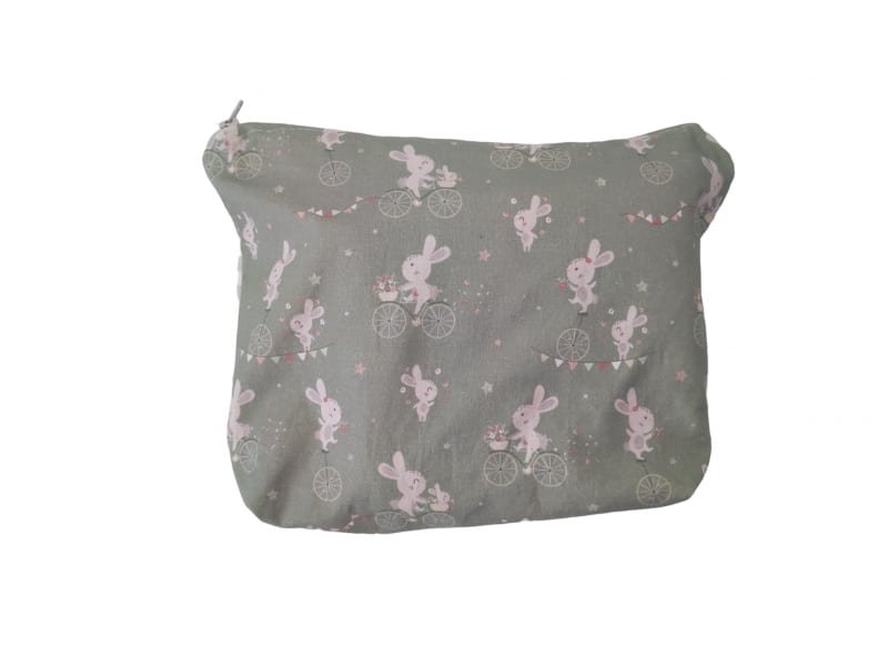 Neceser de conejitos hecho de algodón, con diseño único que mantienen todo seguro y organizado. Con una cremallera resistente y espacio suficiente para pañales y otros artículos esenciales, son ideales para el día a día con tu bebé.