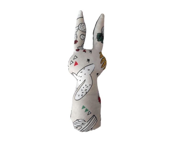 El sonajero bebe Rabbit es un juguete bebe hecho a mano en algodón con cascabel y estampados únicos. Seguro, divertido y estimulante para tu hijo.